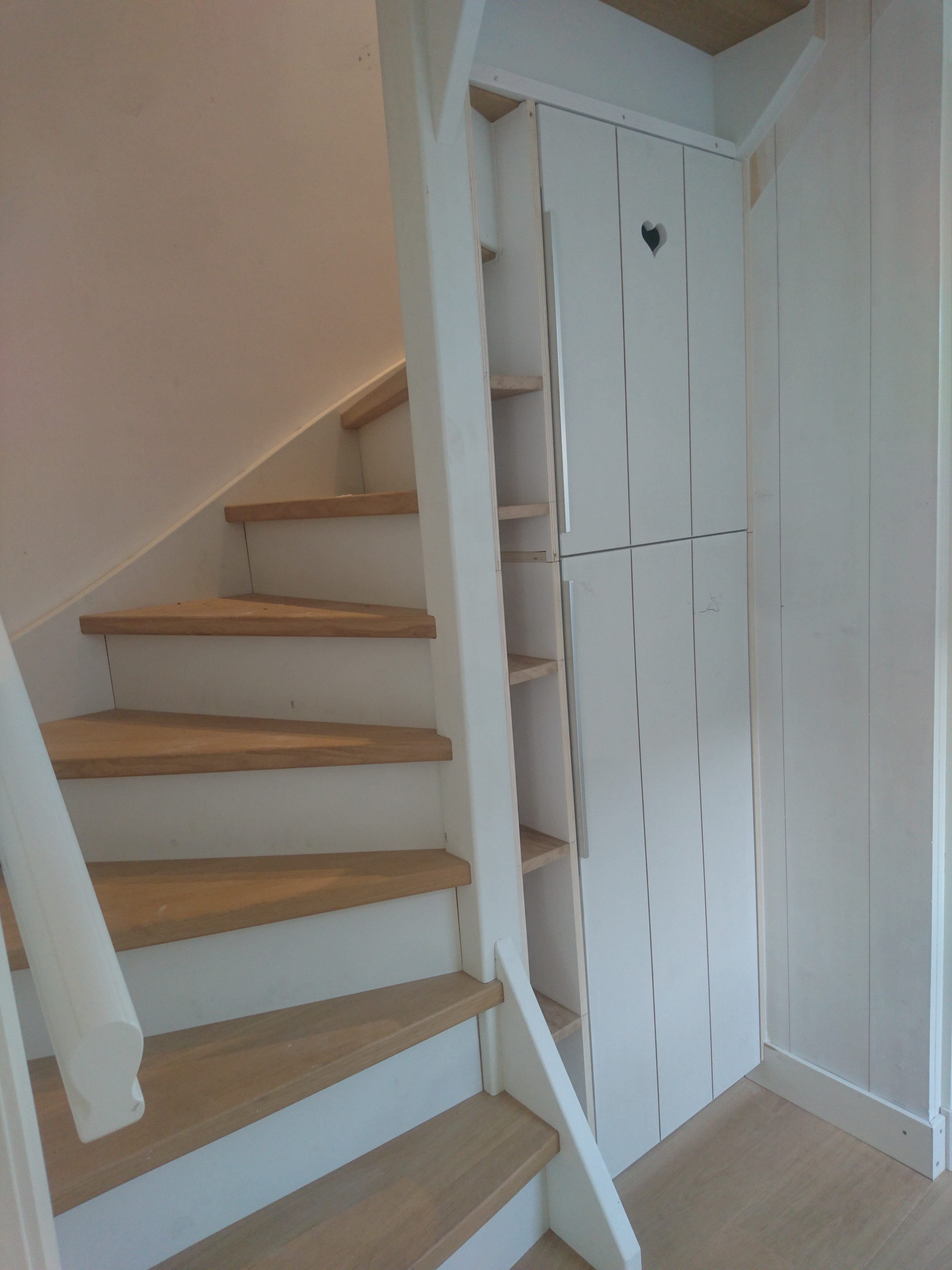 ‘Ons pandje valt onder beschermd dorpsgezicht. Toen we het gingen renoveren, hebben we Coen gevaagd boven een bedstee te bouwen en een oplossing te bedenken voor kastruimte. We wilden dat het timmerwerk eruit zou zien alsof het er altijd al in had gezeten. We gaven Coen een ruw idee en zeiden dat hij het verder zelf mocht bedenken. En dat deed hij, al zingend en hardop denkend. Met als resultaat dat zowel de kasten als de bedstee perfect zijn geïntegreerd in ons huis. Coen heeft een goed gevoel voor ontwerp en oog voor detail – zelfs de schroefgleufjes stonden als soldaatjes in een rij. Coen heeft zichtbaar plezier in zijn werk en is apetrots op zijn vak – daar hebben we enorm van genoten.’