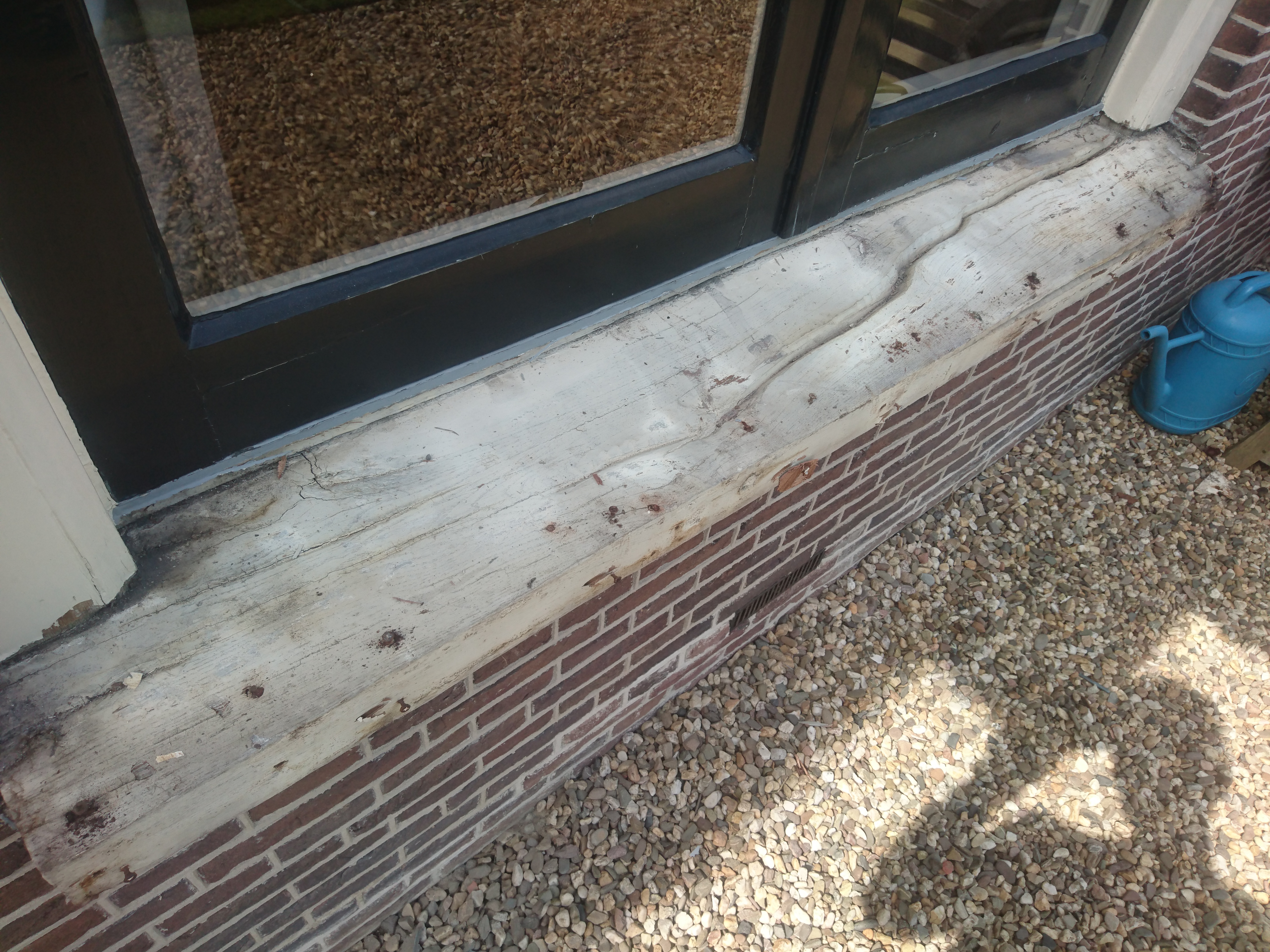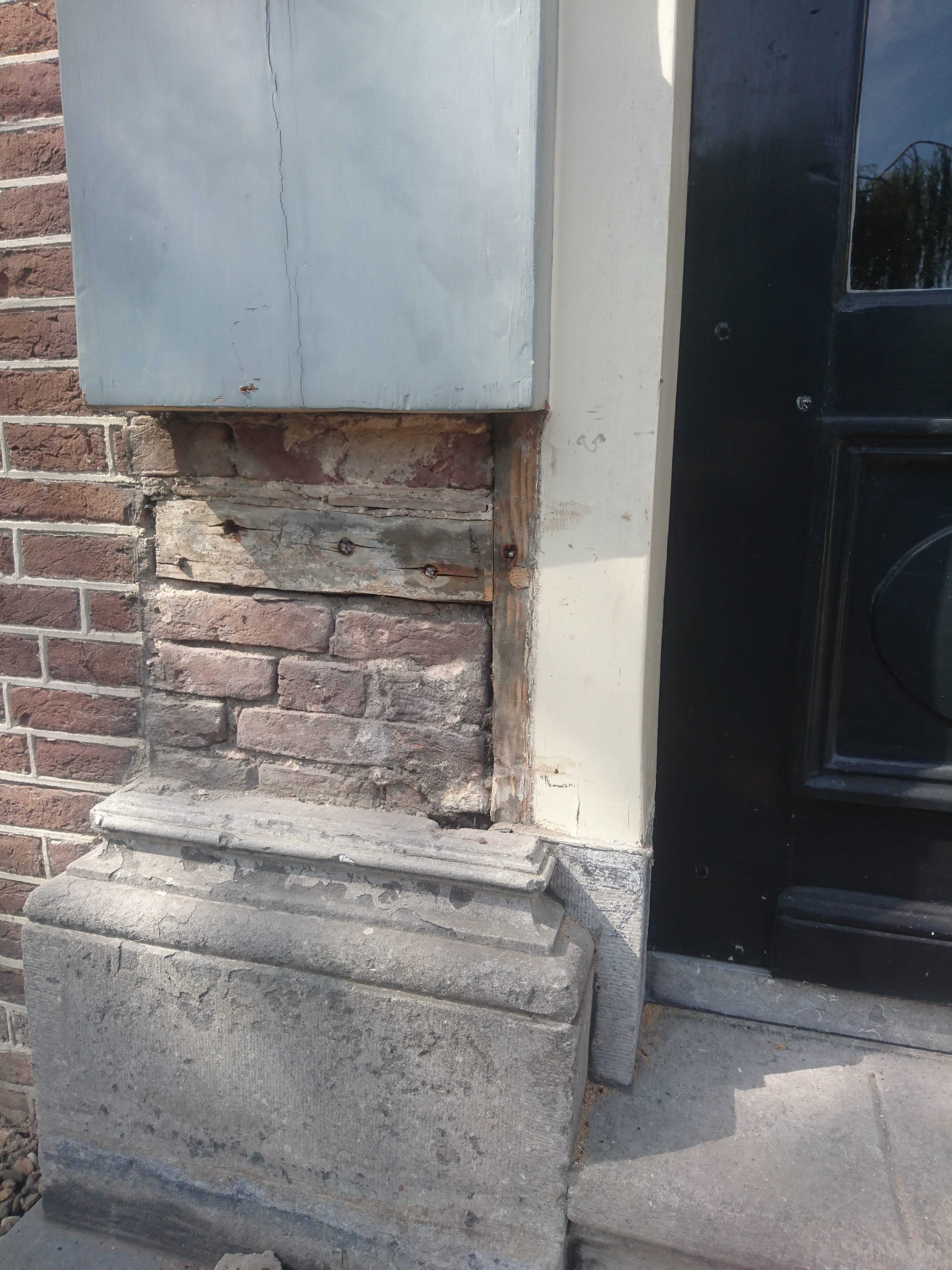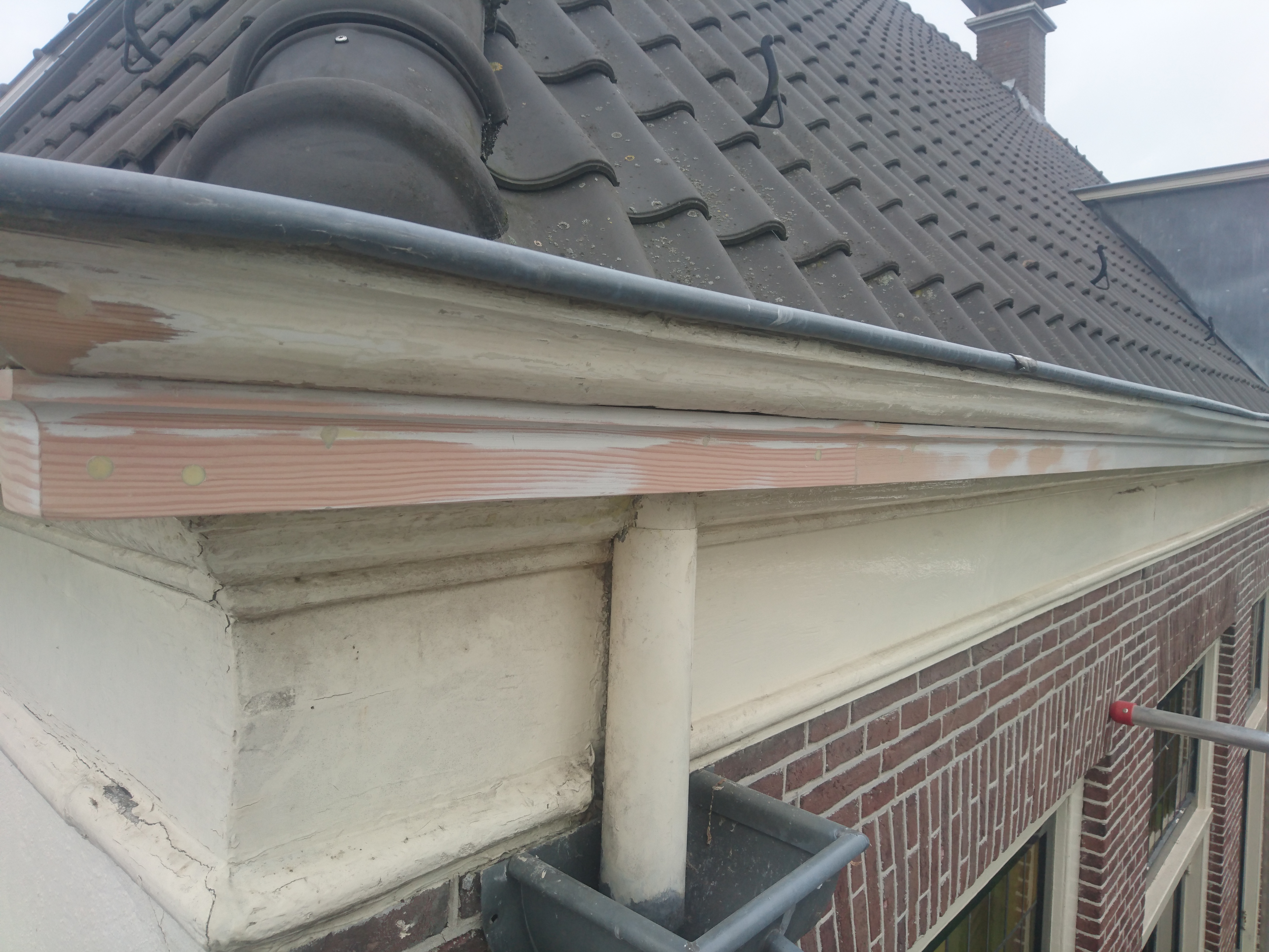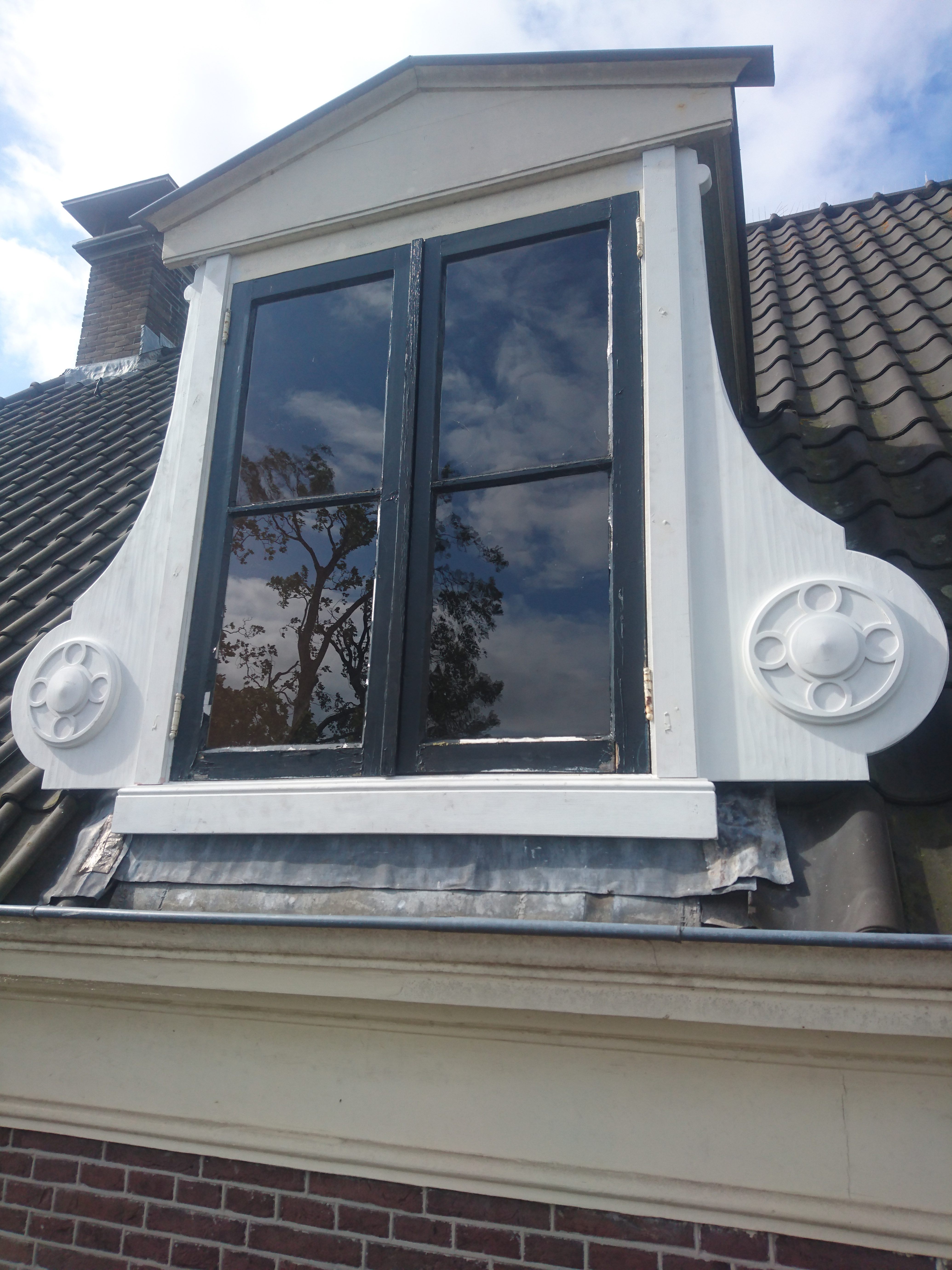 De dakkapel voorzien van nieuwe oren en de eiken dorpels vervangen door natuurstenen dorpels met aangehakte neuten. Verder de kozijnen hersteld, waarbij alleen de verrotte delen zijn vervangen.