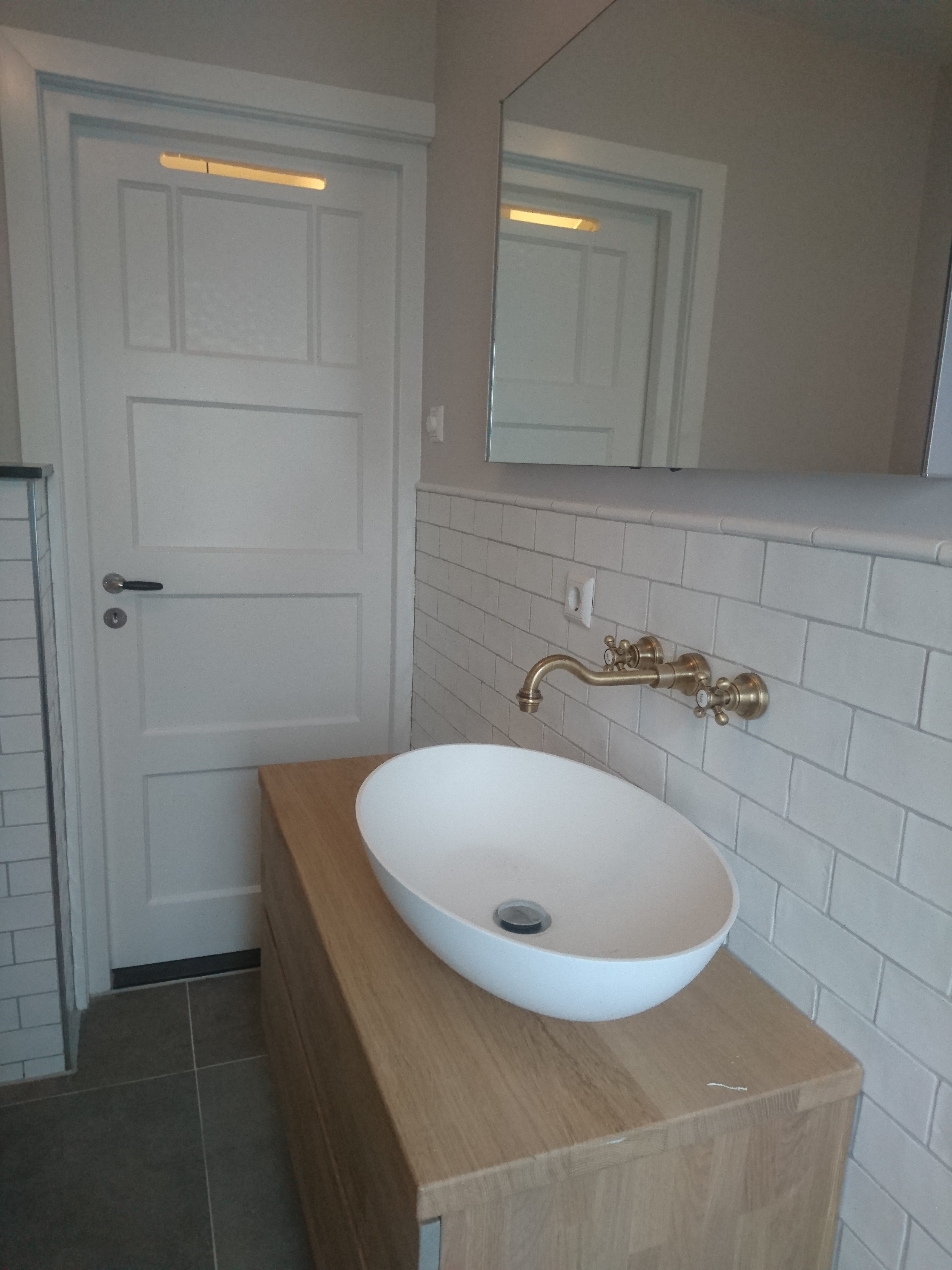 Bakelieten schakelaars en stopcontacten geplaatst. Twee badkamers vernieuwd en kozijnen hersteld en vervangen.