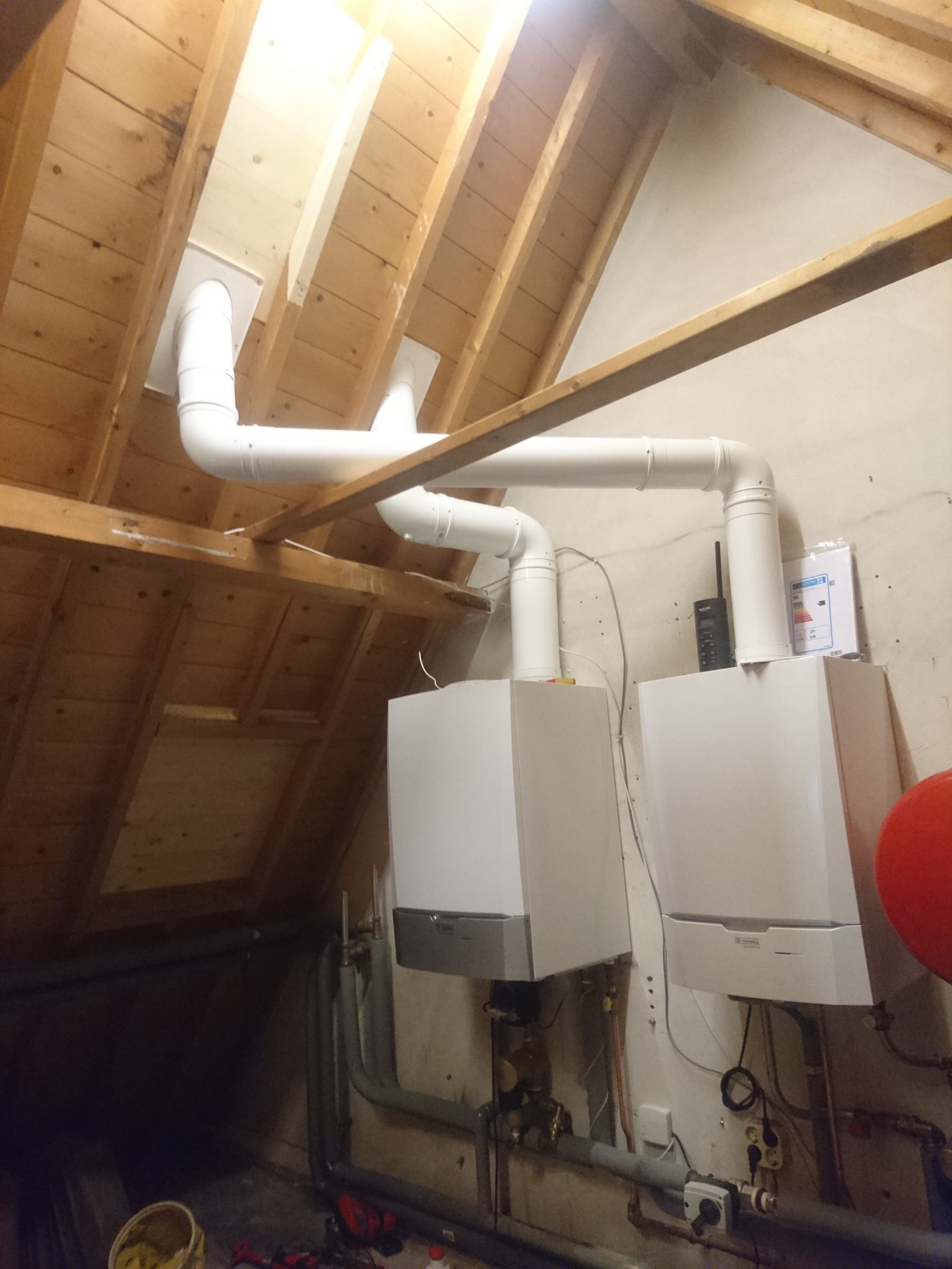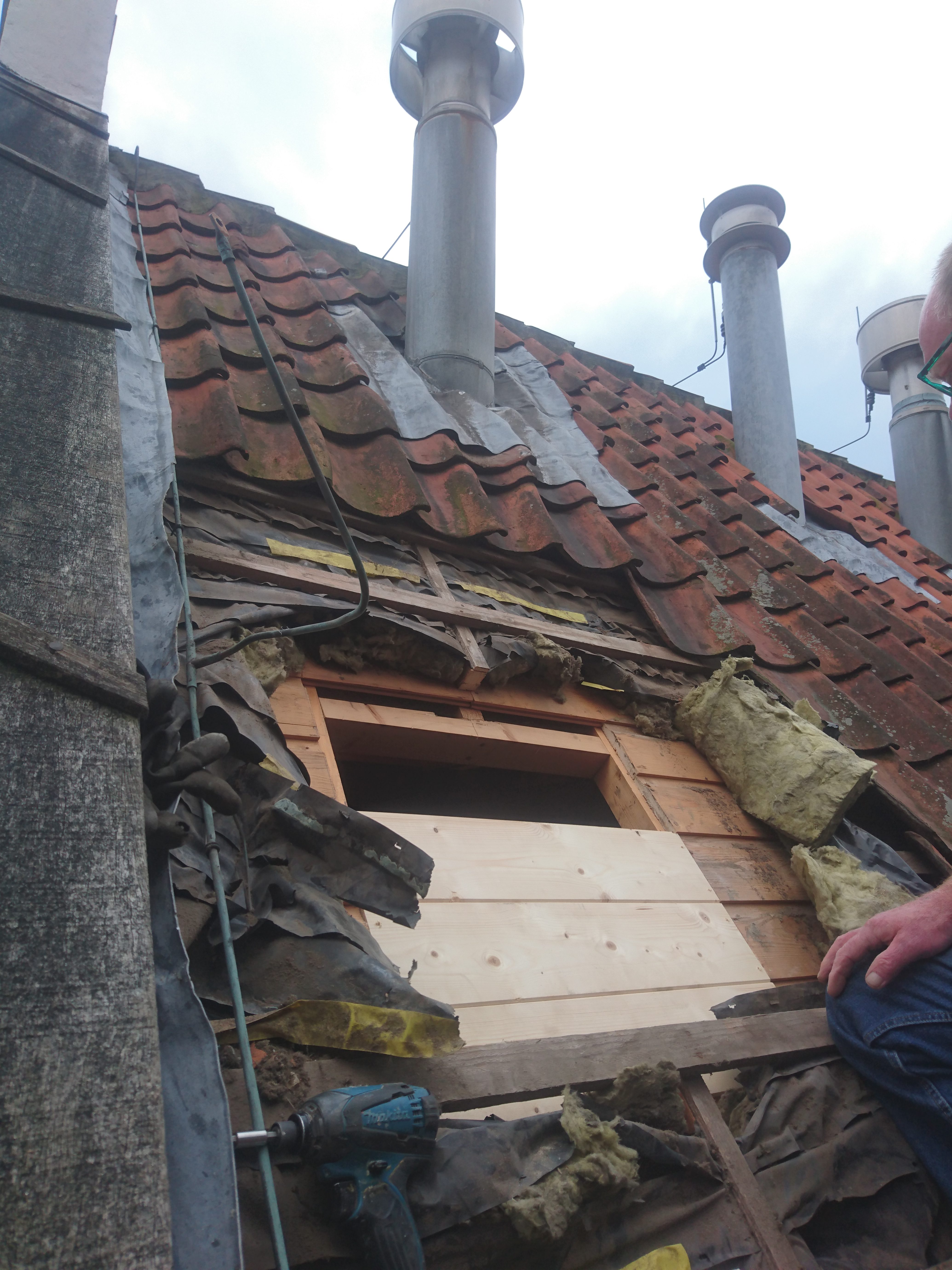 Bij de plaatsing van een nieuwe cv-installatie in de Lutherse Kerk in Woerden vier oude dakdoorvoeren vervangen door twee kleinere dakdoorvoeren. Het dak zowel binnen als buiten in de oorspronkelijke staat teruggebracht.