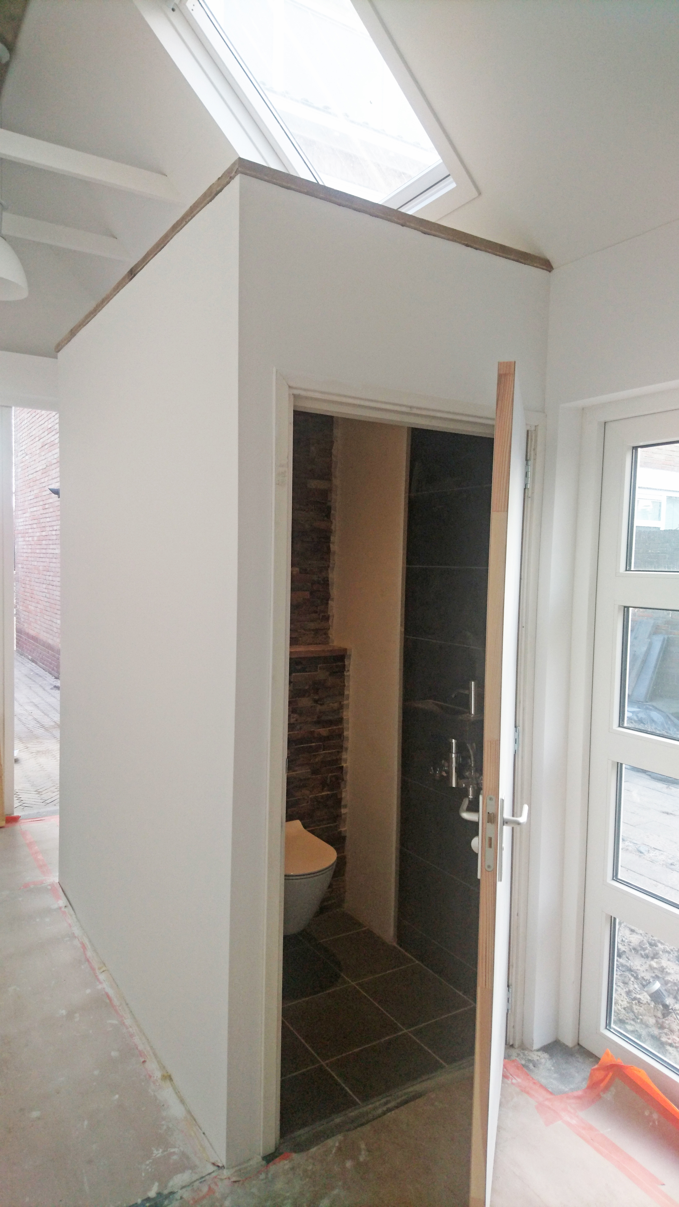 Onder meer een werkblok met waskom geplaatst en een garderobehoek en een toiletruimte gemaakt. Verder getegeld en het elektra gedeeltelijk vervangen.